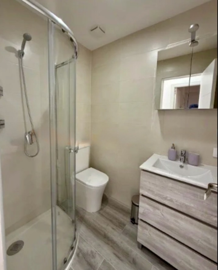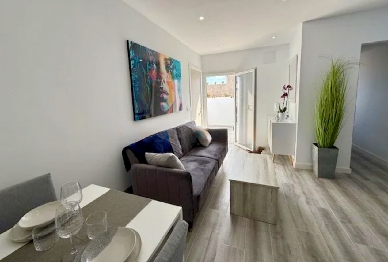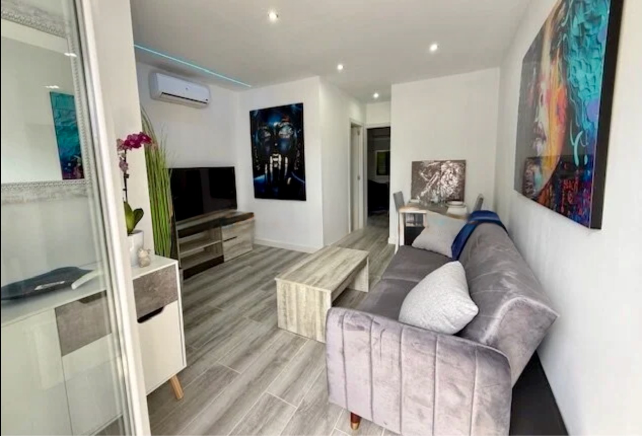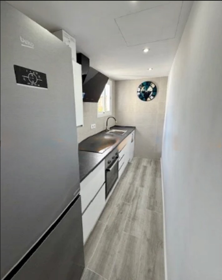 Die Immobilie verfügt über eine Wohnfläche von ca. 90 m², die sich über zwei Ebenen erstreckt. Im Erdgeschoss befindet sich ein praktischer Garagenbereich, der sich sowohl als Stellplatz als auch als zusätzlicher Stauraum eignet. Die obere Etage beherbergt den Hauptwohnbereich, der vollständig renoviert wurde. Zwei gemütliche Schlafzimmer, ein modernes Badezimmer sowie ein heller Wohnbereich mit direktem Zugang zu einer ca. 9 m² großen Terrasse schaffen ein angenehmes Wohngefühl. Die voll ausgestattete Küche ist in das Raumkonzept integriert und lädt zum Kochen und Verweilen ein. Klimaanlagen in allen Räumen sorgen ganzjährig für ein angenehmes Raumklima.