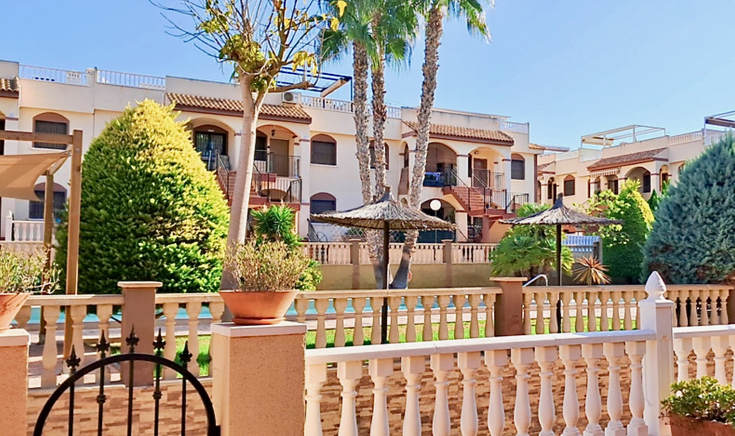 Die Gemeinschaft bietet zwei gepflegte Pools, viel Grün und ein angenehmes, ruhiges Umfeld. Ein privater Parkplatz innerhalb des abgeschlossenen Bereichs ist inklusive.