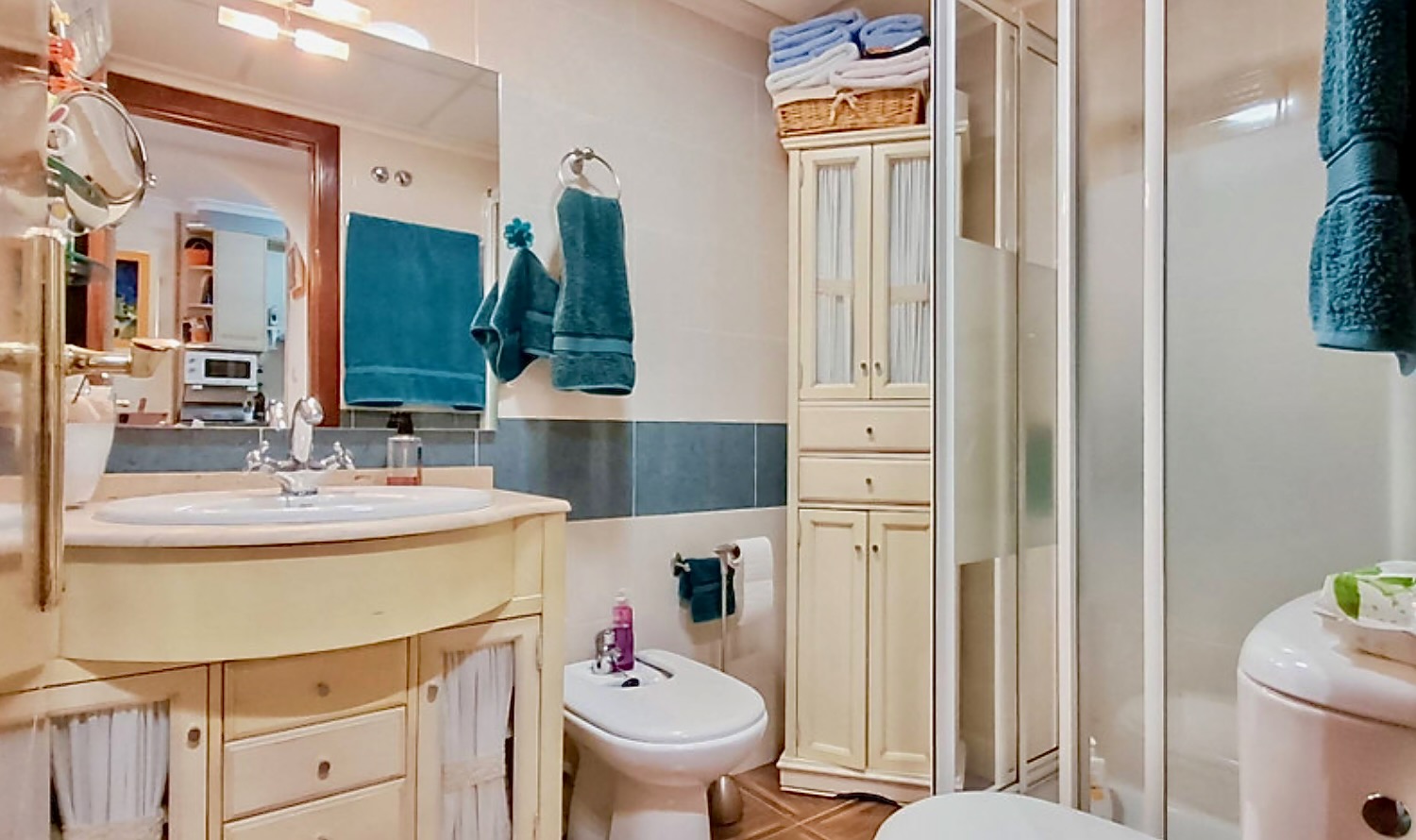 Beide Schlafzimmer verfügen über Einbauschränke, das Badezimmer ist mit einer modernen Duschkabine ausgestattet.