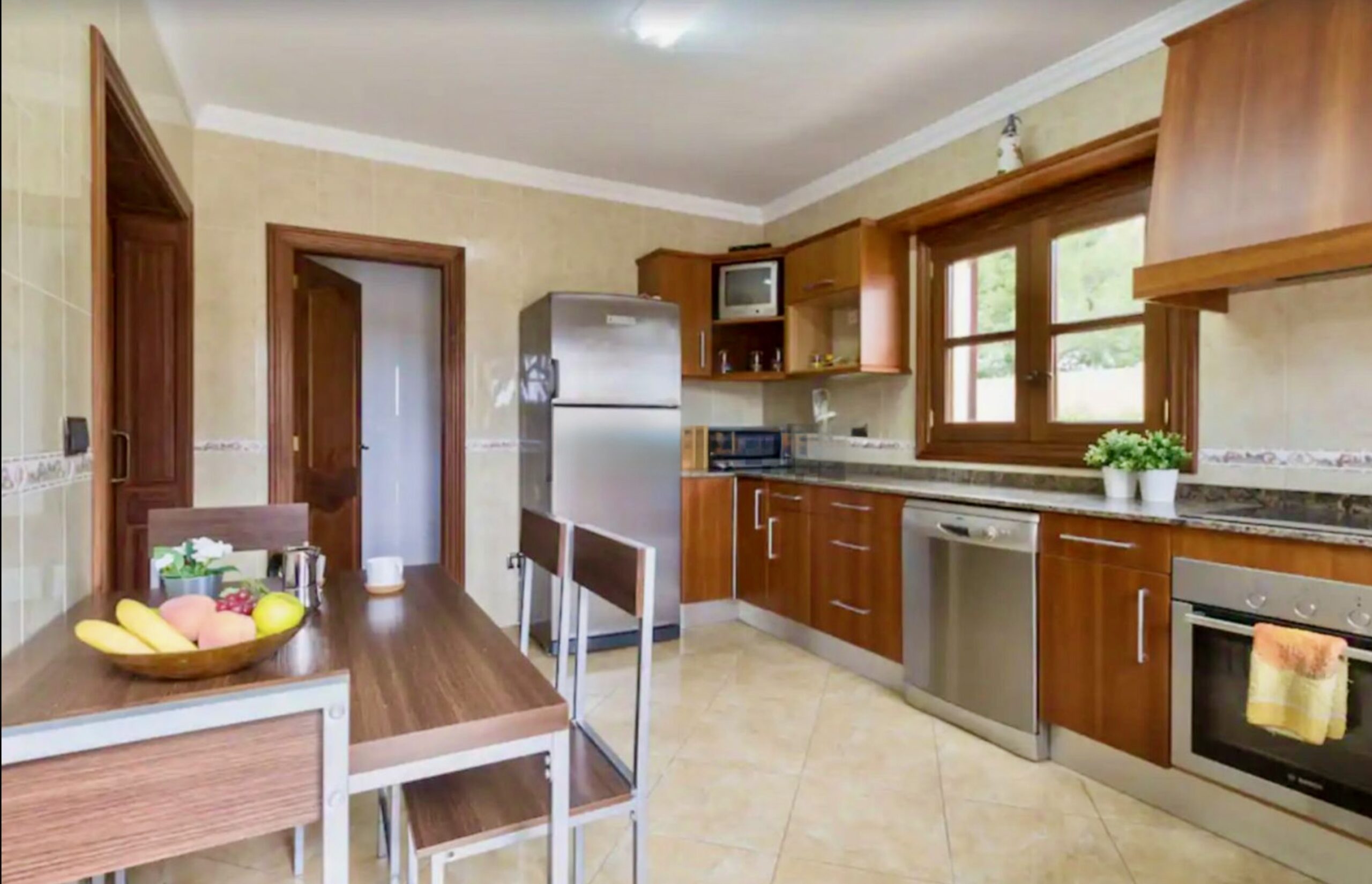 Beide Häuser sind identisch gestaltet und bieten eine voll ausgestattete Küche, ein großzügiges Wohnzimmer mit Kamin, sowie auf der ersten Etage ein Schlafzimmer mit Bad. Die zweite Etage beherbergt drei weitere Schlafzimmer mit Balkon und ein gemeinsames Bad.