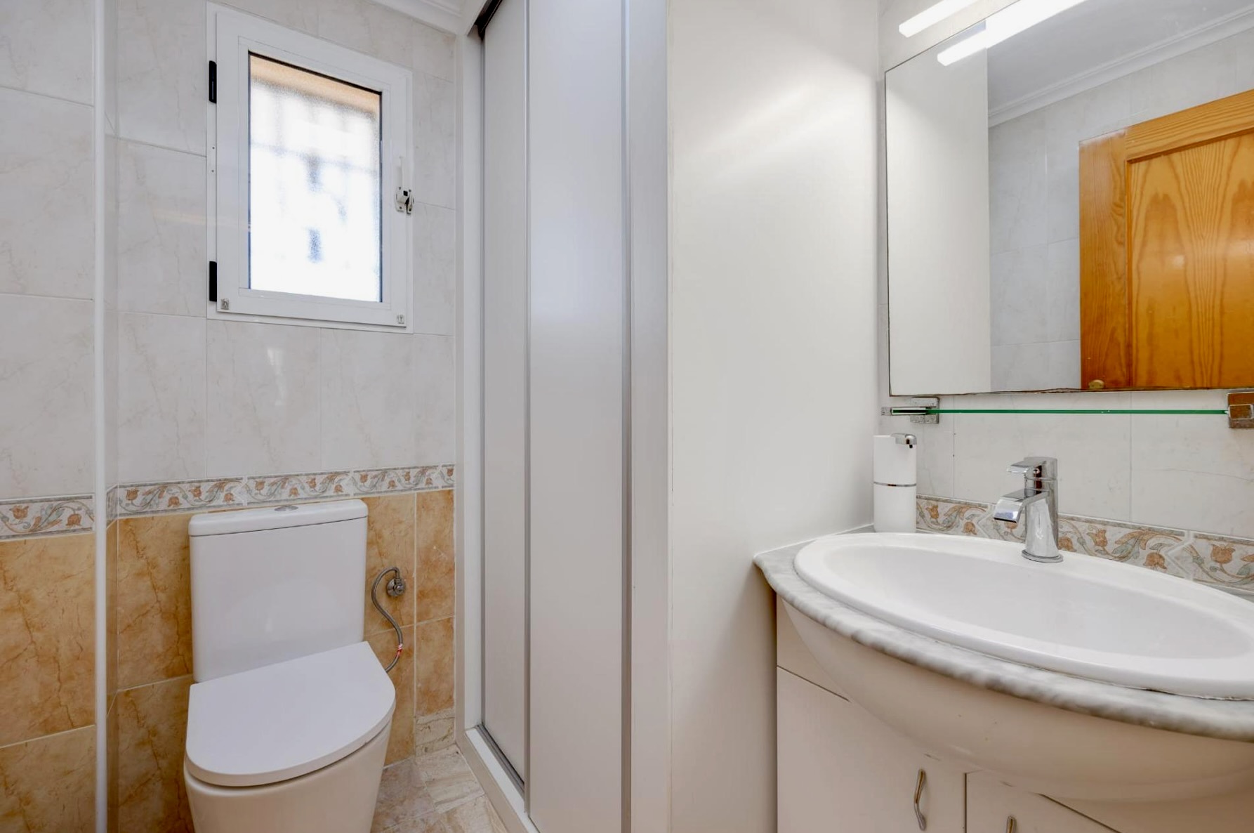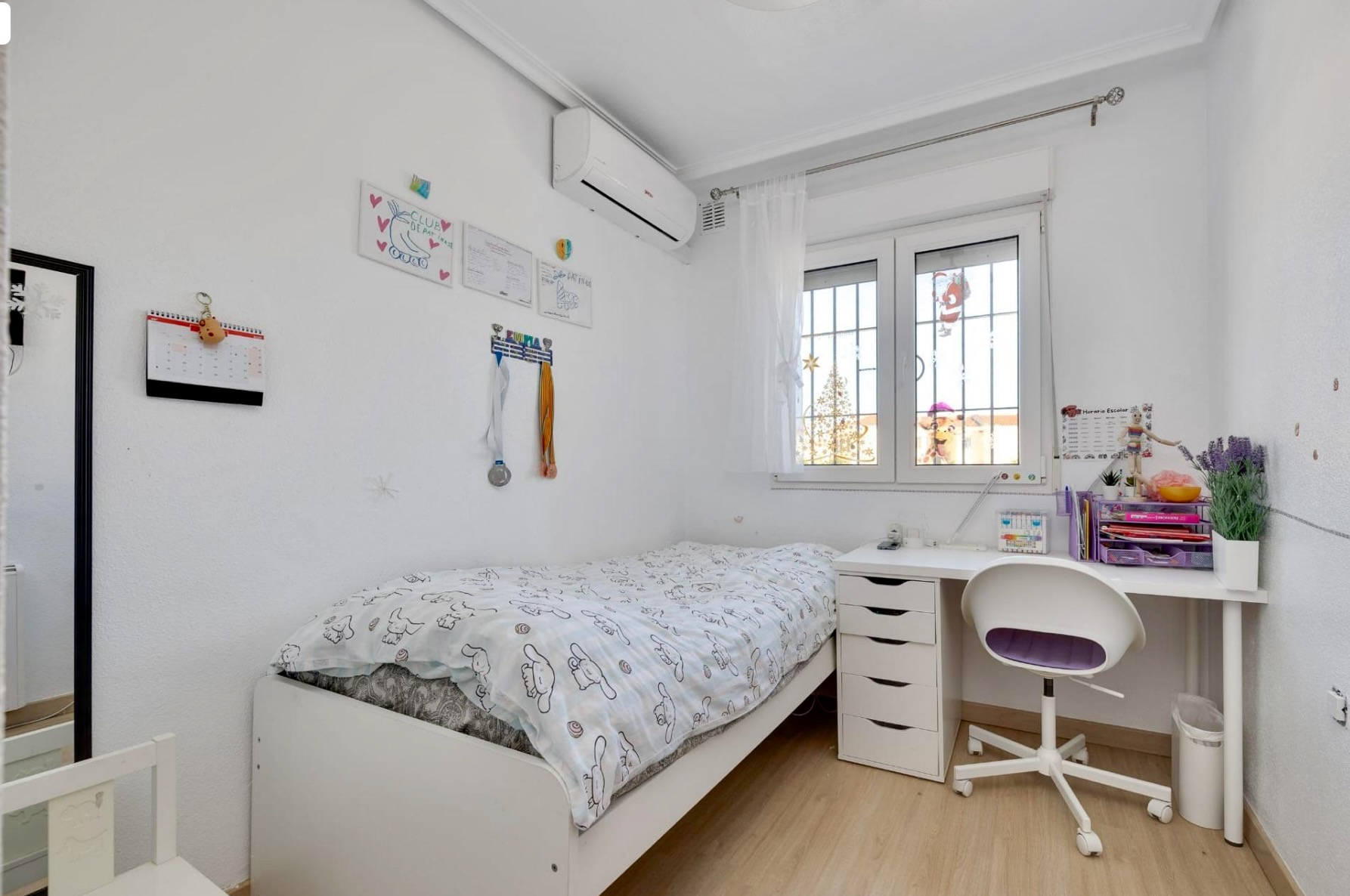 Das Haus verfügt über eine bebaute Fläche von ca. 90 m² und bietet drei helle Schlafzimmer sowie zwei Badezimmer. Die funktionale Raumaufteilung schafft ein angenehmes Wohngefühl und bietet ausreichend Platz für den Alltag. Einbauschränke in den Schlafzimmern sorgen für praktischen Stauraum und eine aufgeräumte Wohnatmosphäre.